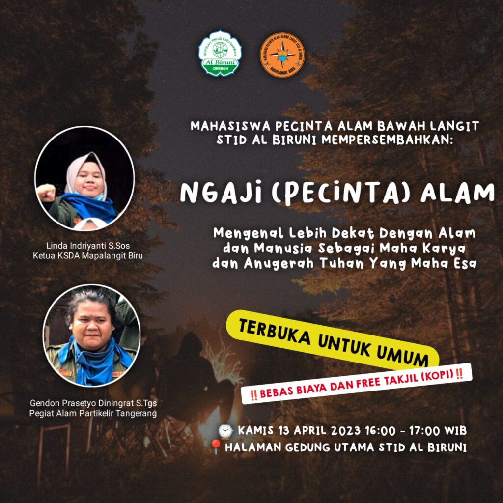 Kagetnews | Cirebon – Salam lestari!!! Unit Kegiatan Mahasiswa (UKM) Mahasiswa Pecinta Alam Bawah Langit (Mapalangit) Sekolah Tinggi Ilmu Dakwah (STID) selenggarakan Ngaji Pecinta Alam. Yang akan dilaksanakan pada Kamis 13 April 2023 bertempat di Halaman Gedung Utama Kampus Al Biruni. Dalam rangka urun menghidupkan bulan Ramadan dan silaturahmi tahunan organisasi, UKM Mapalangit Biru mengadakan […]