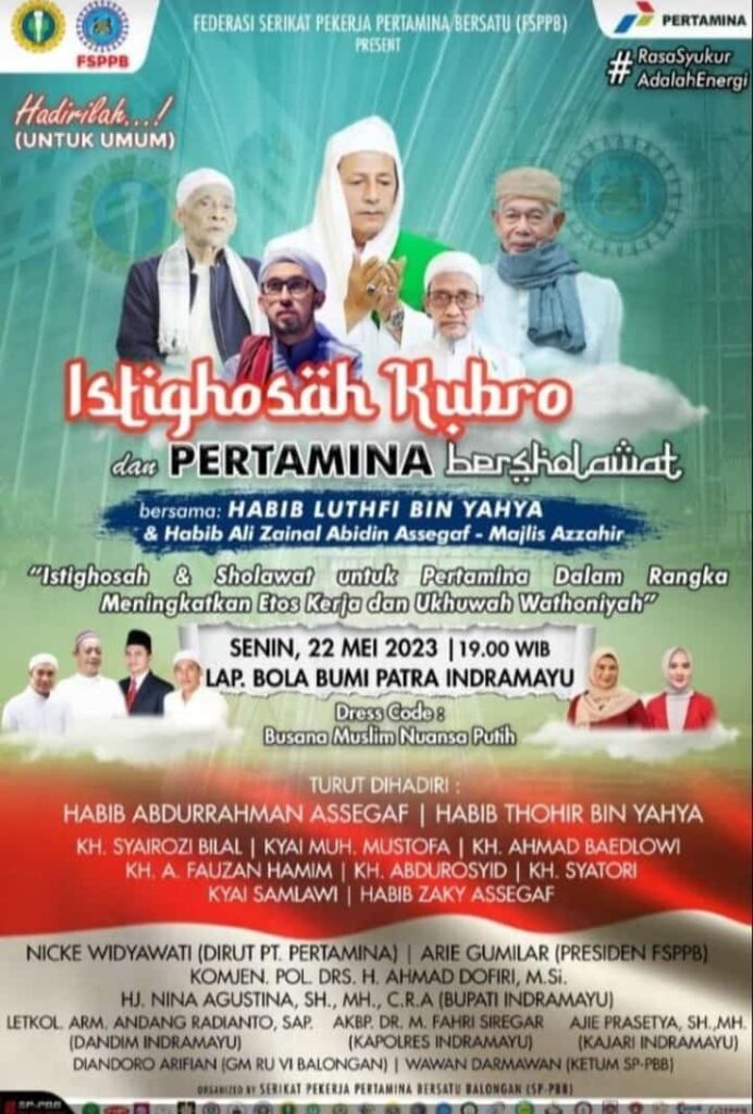 Kagetnews | INDRAMAYU – Gelaran Istighosah & Pertamina Bersholawat yang diadakan oleh Serikat Pekerja Pertamina Bersatu Balongan (SP-PBB) bekerja sama dengan Majelis Gabungan Indramayu siap dilaksanakan malam ini, Senin, 22 Mei 2023 pada pukul 19.00 WIB berlokasi di Lapangan Bola Bumi Patra Indramayu. Senin ( 22/5/2023 ). Habib Muhammad Luthfi Bin Yahya, Habib Ali Zainal […]