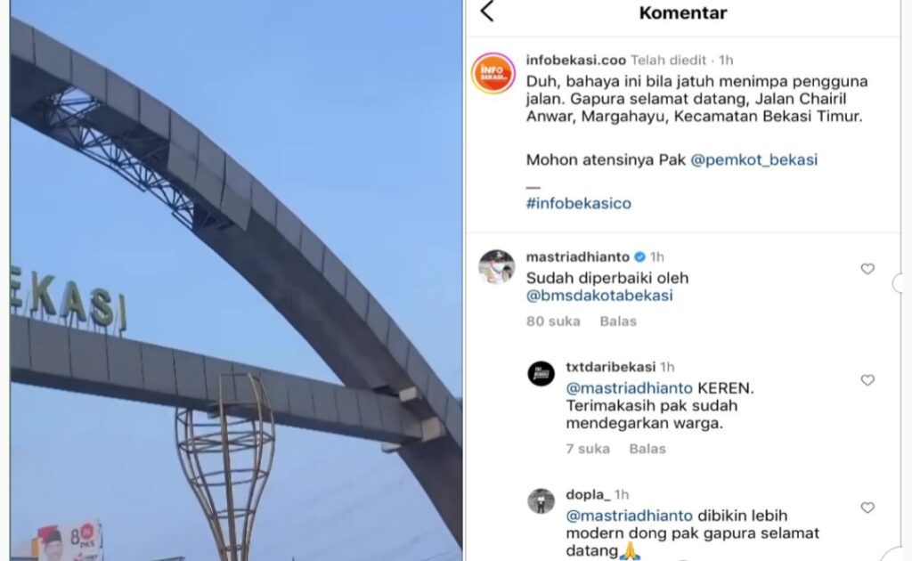 Melalui Medsos Pemkot Kota Bekasi Respon Cepat Kerusakan Gapura Selamat Datang Di Bekasi Timur