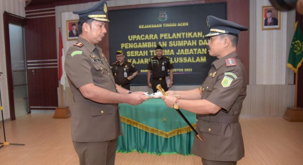 Kagetnews | Aceh – Kepala Kejaksaan Tinggi Aceh Bambang Bachtiar, S.H.,M.H memimpin upacara pelantikan, pengambilan sumpah dan serah terima jabatan Kepala Kejaksaan Negeri Subulussalam. bertempat di ruang rapat lantai II Kejati Aceh Senin 14 Agustus 2023 Adapun pejabat yang dilantik adalah Supardi, S.H. sebagai Kepala Kejaksaan Negeri Subulussalam sebelumnya menjabat sebagai Kepala Bagian Tata Usaha […]