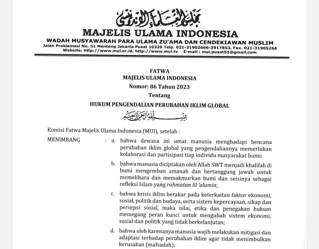 Majelis Ulama Indonesia Mengeluarkan Fatwa Pengendalian Perubahan Iklim Global