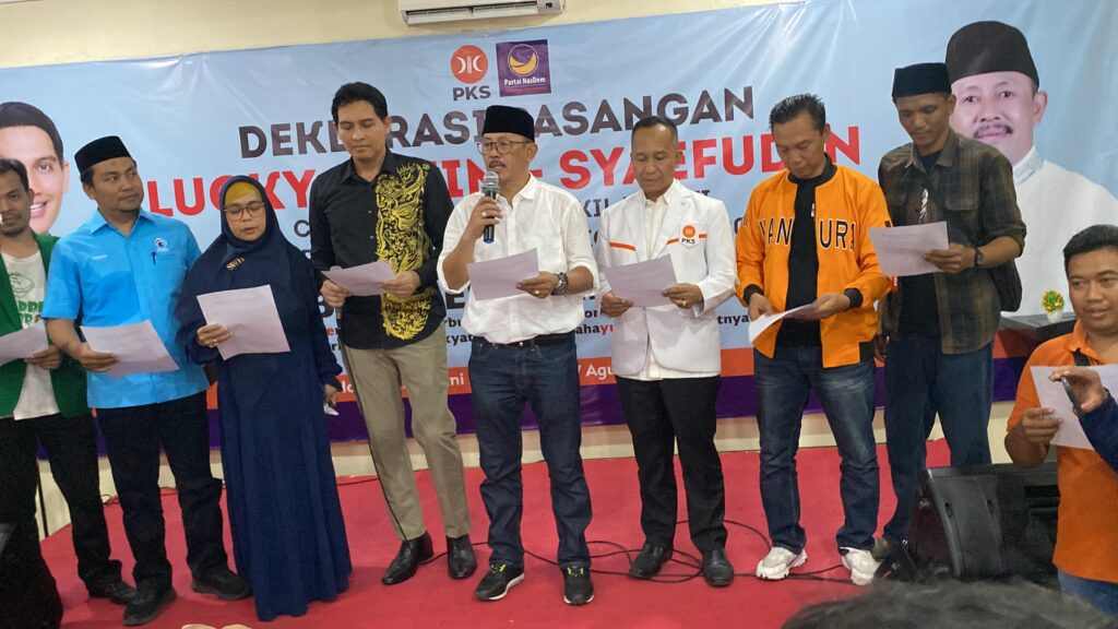 Kagetnews | Indramayu – Deklarasi pasangan calon bupati dan wakil bupati lucky Hakim dan H. Syaefudin, dilaksanakan di aula hotel Handayani Indramayu, Selasa, (27/08/2024). Keduanya diusung oleh beberapa partai, yakni PKS, Partai Nasdem, PBB, PPP, Gelora, PKN , Partai Buruh dan Hanura. Selain membacakan deklarasi bersama, seluruh partai politik juga berkomitmen memberikan dukungan dan komitmen […]
