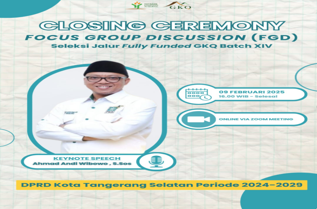 Kagetnews | Jakarta – Gerakan Kampung Al-Qur’an selenggarakan Forum Diskusi Grup (FGD) yang mengambil tema “Menjadi Agen Perubahan: Menebar Cahaya Al-Qur’an diadakan secara online via zoomeeting (Minggu/9/2/2025). FGD tersebut dihadiri oleh anggota DPRD Kota Tangerang Selatan 2024-2029 Ahmad Andi Wibowo dan Ketua Umum Yayasan Kampung Al-Qur’an M. Iqbal Nur Aulia Fazri serta puluhan peserta FGD. […]