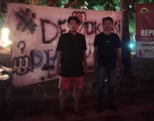 Potret Mahasiswa yang tergabung di Bemnus Jabar Korwil Ciayumajakuning pasca memasang banner/tulisan kritikan di Tugu Perjuangan Indramayu, 15/08/2024. (Istimewa)