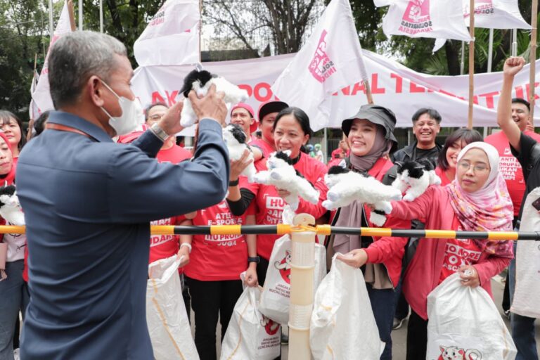 Di akhir aksi, boneka-boneka kucing yang telah dikeluarkan dari karung tersebut diserahkan semuanya oleh masa aksi ke Hakim yang mulia melalui perwakilan staf Mahkamah Konstitusi. *** (Red)