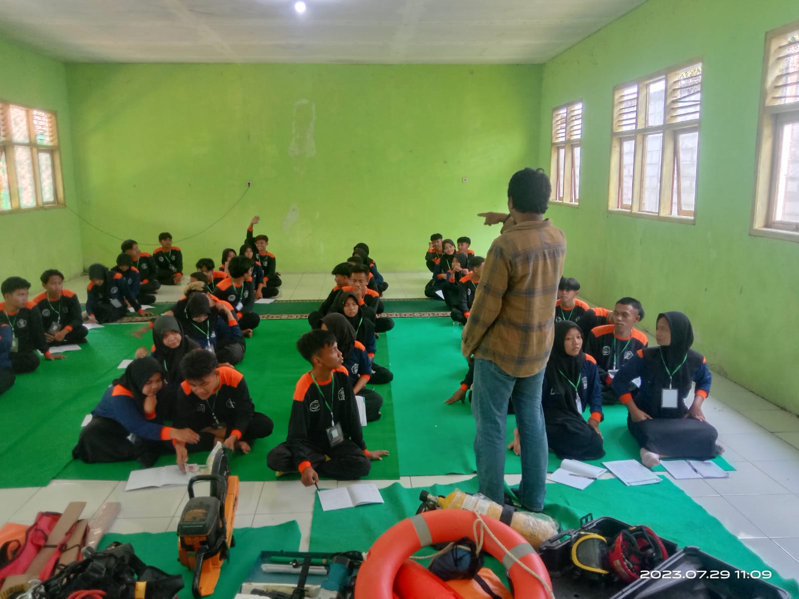 Kala itu, didapati kurang lebih ada 50 Siswa dari beberapa perwakilan SMK NU di Indramayu, hadir mengikuti sosialisasi alat-alat rescue dari ERT.