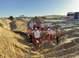 Potret lokasi penguburan 15 awak ambulance di Tal al-Sultan, Rafah, Gaza Selatan. (Sumber: Free Palestine Network)