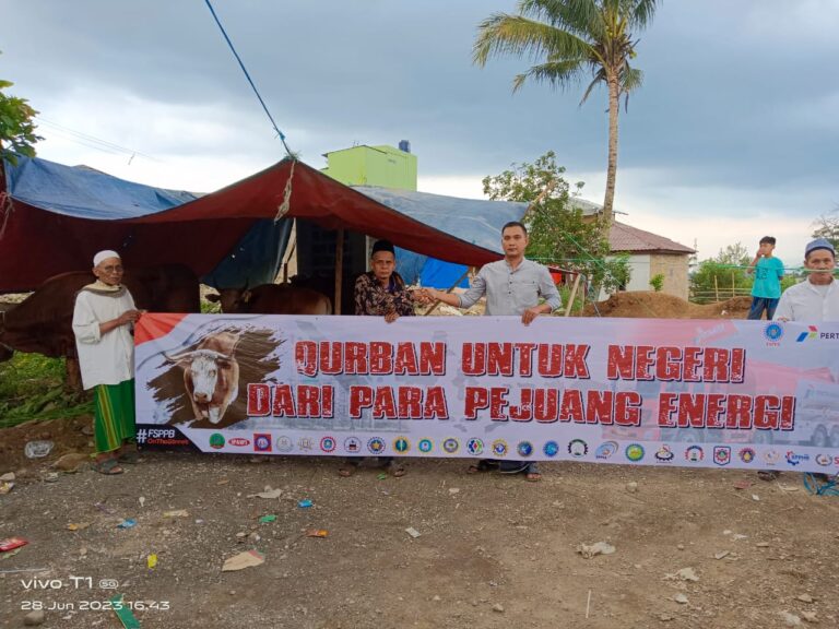 Kagetnews | Cianjur – FSPPB (Federasi Serikat Pekerja Pertamina Bersatu) di Hari Raya Idul Adha 1444 Hijriah distribusikan hewan Kurban kepada warga terdampak gempa di Kampung Kadudampit Desa Rancagoong, Kecamatan Cilaku Kabupaten Cianjur Jawa Barat pada Rabu, 28 Juni 2023.