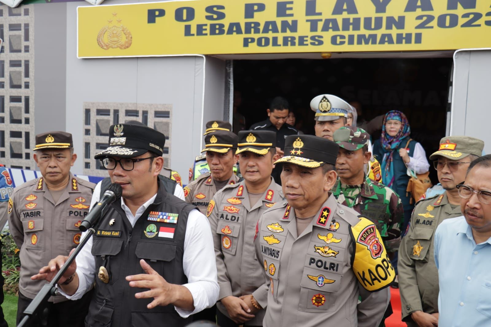 Kagetnews | Bandung – Kapolda Jabar, Irjen Pol. Dr. Akhmad Wiyagus S.I.K., M.Si., M.M. mendampingi Gubernur Jawa Barat Ridwan Kamil Meninjau Pos Pelayanan Ops Ketupat Lodaya 2023 di Gate Tol Padalarang, Rabu (26/4/2023). Pengecekan tersebut dalam rangka Arus Balik Lebaran Idul Fitri Pada Operasi Ketupat Lodaya 2023 di wilayah hukum Polres Cimahi.