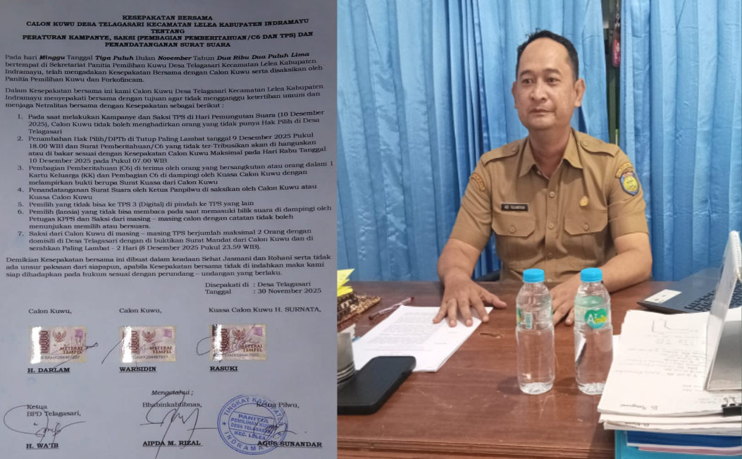 “Penyelenggaraan Pilwu di Desa Telagasari tetap sesuai Perbup, adapun kesepakatan yang telah dibuat itu tidak sah, karena Calon Kuwu dengan nomor urut 3 (tiga) tidak menandatangani langsung (diwakili oleh tim sukses) kesepakatan tersebut” jelas Ade Yuliansyah, (2/12/2025).