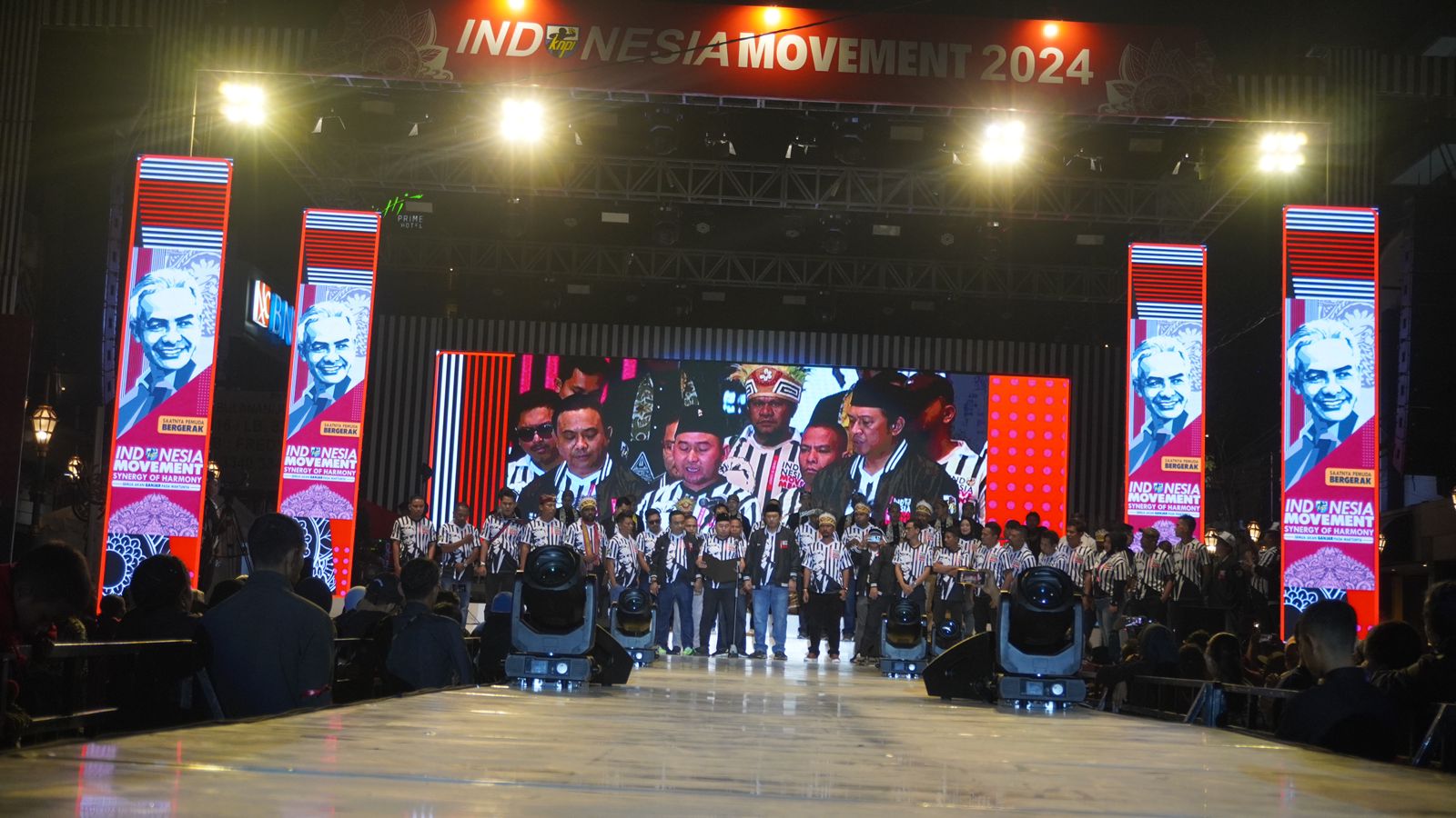 Panggung terbuka digelar meriah di Kajoetangan Heritage, Kota Malang, pada Sabtu (02/8/2023), diisi dengan sejumlah rangkaian acara, dari mural, panggung rakyat hingga atraksi seni tradisi budaya. Ribuan massa pemuda, masyakarat dan relawan Ganjar memenuhi arena yang terletak di jantung Kota Malang tersebut.
