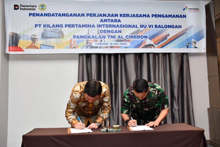 Penandatanganan perjanjian kerja sama pengamanan ini dilakukan oleh General Manager PT KPI RU VI Balongan, Yulianto Triwibowo, dengan Komandan Pangkalan TNI AL Cirebon, Letkol Laut (P) Faisal Yanova Tanjung, S.E., M.Tr. Opsla, di Hotel Patra Cirebon, Jum’at (18/7/2025).