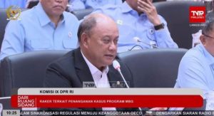 Potret Kepala Badan Nasional (BGN) Dadan Hindayana saat mengikuti rapat kerja dengan Komisi IX DPR RI di Gedung DPR, Senayan, Jakarta, Rabu, 1/10/2025. (Tangkapan Layar Youtube/DPR RI)