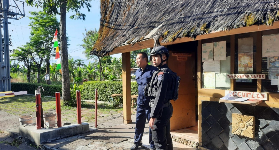 Team Patroli Harkamtibmas Kompi 1 Batalyon D Pelopor Satbrimob Polda Jabar melaksanakan kegiatan Patroli Harkamtibmas untuk memantau aktivitas bersama Petugas Security wisata pemandian air panas di Sabda Alam Cipanas Garut yang sedang bekerja dan menghimbau untuk selalu waspada dari berbagai potensi gangguan Kamtimbas di sekitar tempat kerja.