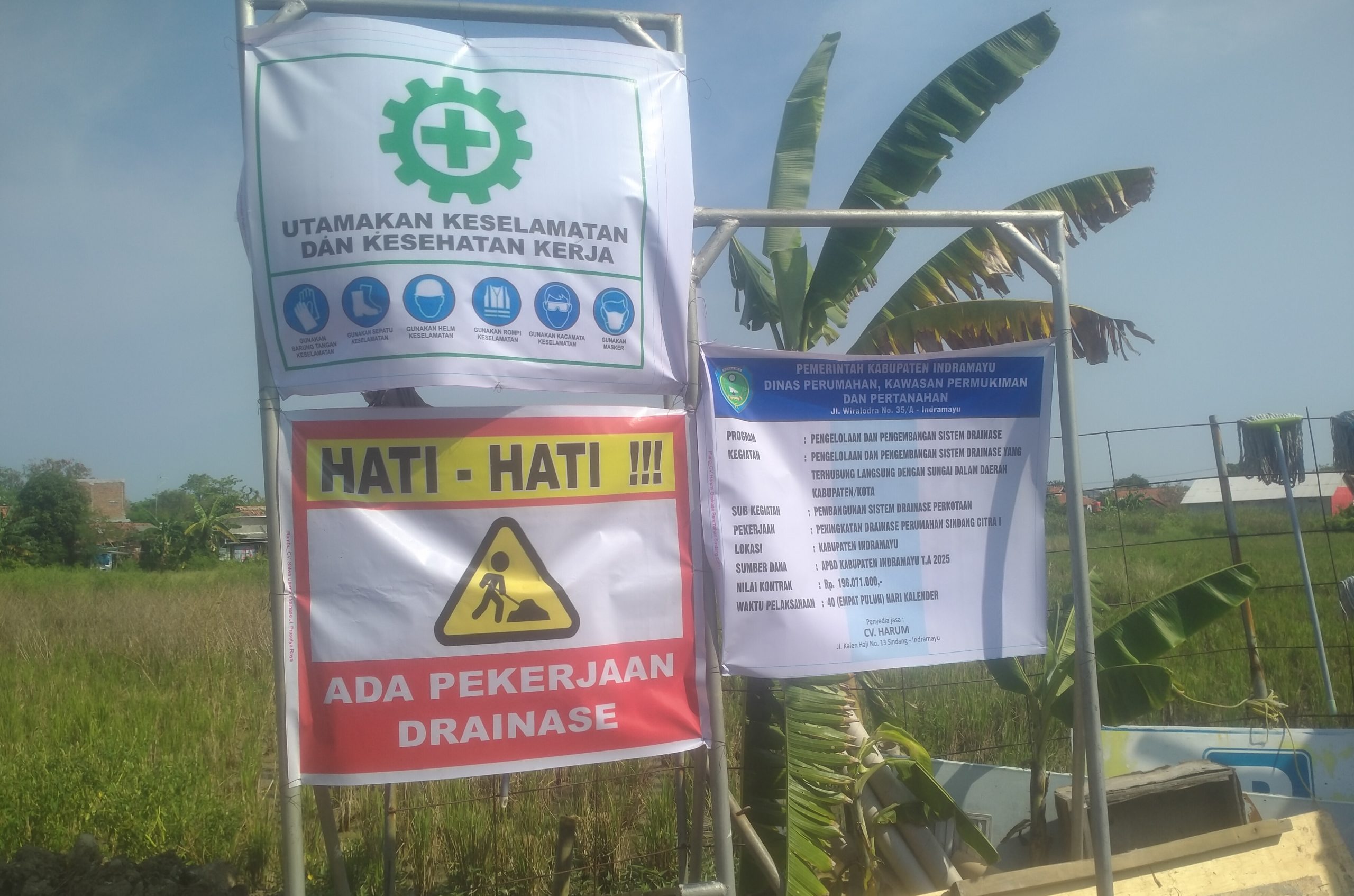 Proyek pembangunan sistem drainase perkotaan menggunakan dana APBD Kabupaten Indramayu TA. 2025 yang dilaksanakan oleh CV. HARUM dengan nilai kontrak sekitar Rp 196.071.000, melalui Dinas Perumahan, Kawasan Pemukiman dan Pertanahan (DPKPP) Kabupaten Indramayu. Pekerjaan dilakukan dengan memperhatikan standar kualitas agar daya tahan jalan lebih lama.