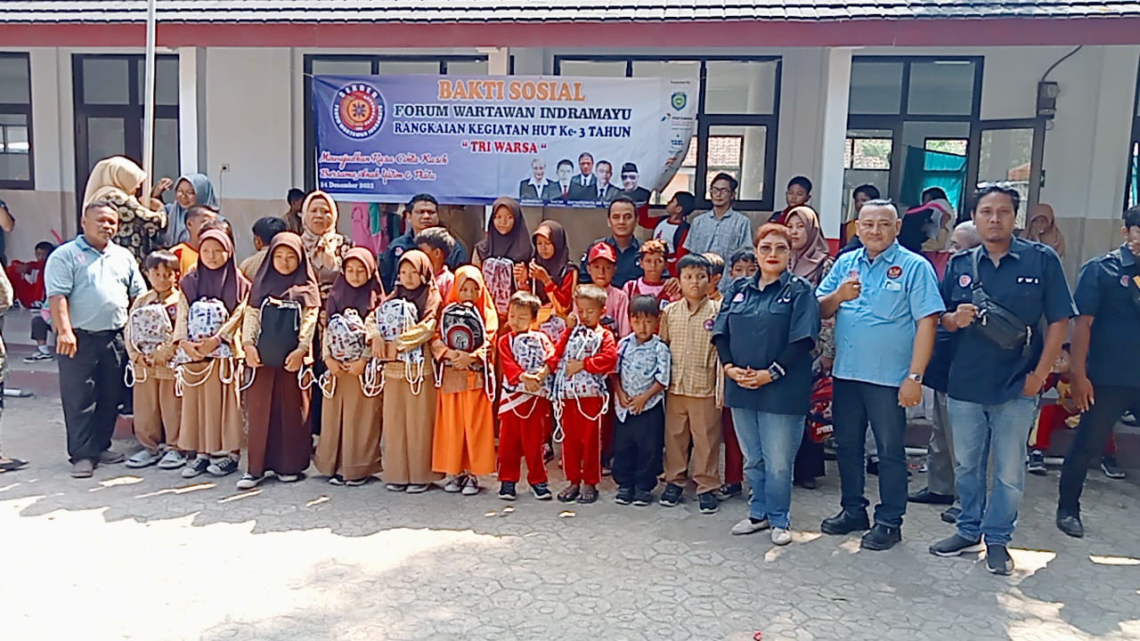 Kagetnews | Indramayu – Rangkaian Hari Ulang Tahu (HUT) ke -3 Forum Wartawan Indramayu (FWI) bagi santunan ke UPTD. SDN 1 Sliyeg Kecamatan Sliyeg Kabupaten Indramayu Jawa Barat. Kamis (21/12/2023)