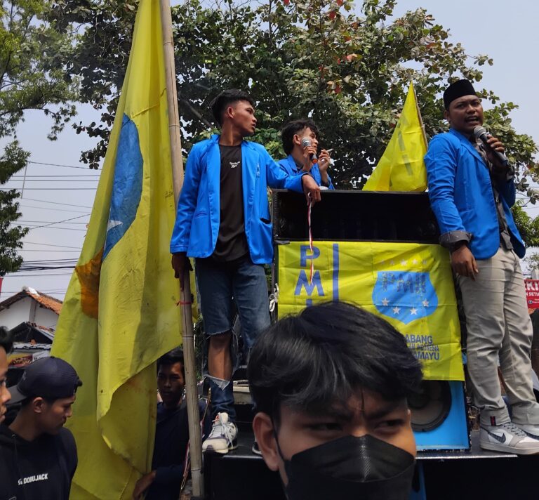 Kagetnews | Indramayu – Pergerakan Mahasiswa Islam Indonesia (PMII) Cabang Indramayu menggelar aksi demonstrasi di depan kantor DPRD Indramayu. Aksi ini dilakukan untuk mengevaluasi kinerja Bupati Nina Agustina Da’i Bachtiar yang dinilai masih belum memenuhi harapan masyarakat (22/05/2024).