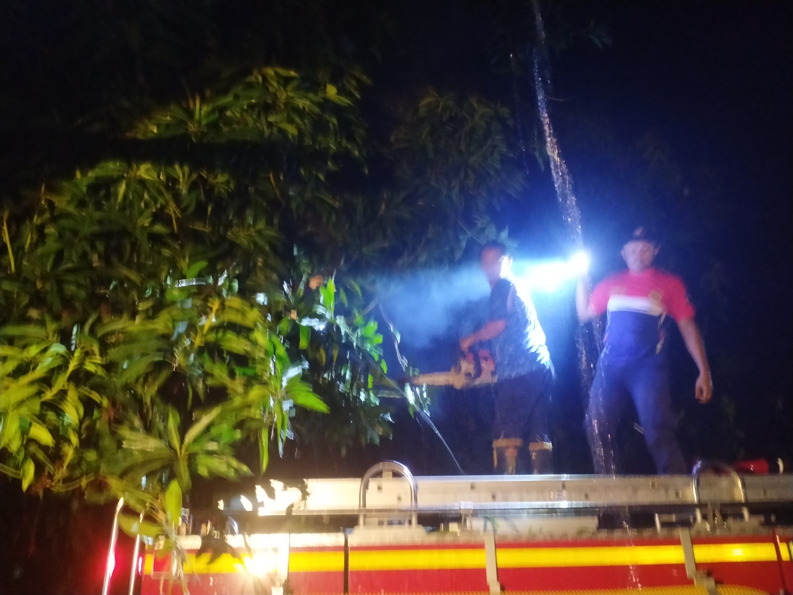 Ketua regu tim damkar, Hendri, menjelaskan bahwa setelah menerima laporan dari warga sekitar pukul 20.55, tim segera menuju lokasi untuk melakukan evakuasi pohon tersebut dan memastikan kabel listrik aman.
