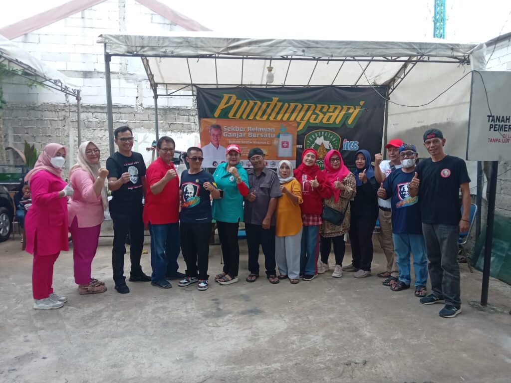 Kagetnews | Depok – Sekretariat Bersama (Sekber) Relawan Ganjar Bersatu Kota Depok melakukan Bakti Sosial (Baksos) suntik vitamin C gratis kepada warga sekitar, di lingkungan RT 05 RW 02 Kelurahan Serua, Kecamatan Bojong Sari Depok, Sabtu (3/6/2023).