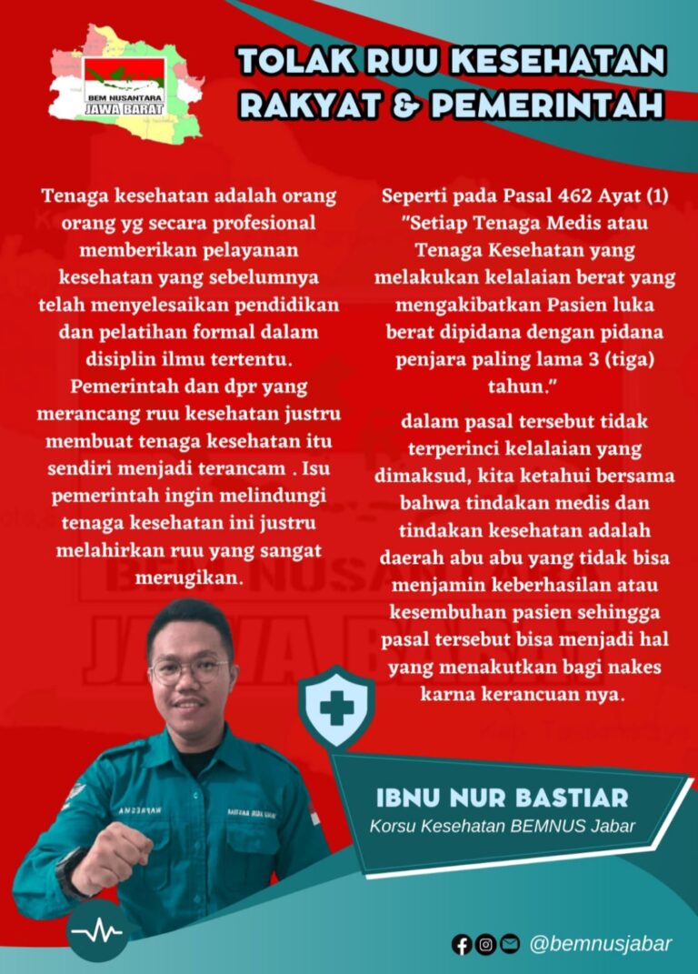 Tenaga kesehatan di Indonesia adalah orang orang dengan panggilan jiwa yang tinggi, mereka menempuh pendidikan yang tinggi, lama serta mahal namun, semua itu tidak berbanding lurus dengan apa yang didapatkan nya hari ini. Pemerintah dan DPR RI yang merancang RUU kesehatan justru membuat tenaga kesehatan itu sendiri menjadi terancam. Isu pemerintah ingin melindungi tenaga kesehatan ini justru melahirkan RUU yang sangat merugikan.