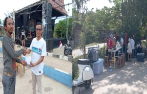 Potret kegiatan sosial Komunitas Setengah Koma pada acara Anniversary ke-8. (Gambar sebelah kiri pemberian uang santunan kepada perwakilan anak-anak yatim, gambar sebelah kanan donor darah bersama PMI Indramayu)