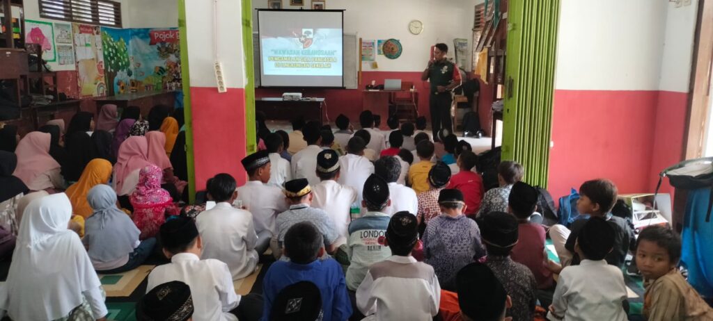 Tanamkan Rasa Cinta Tanah Air, Bati Tuud Koramil Kanigoro Berikan Materi Wasbang Kepada Siswa Siswi SD