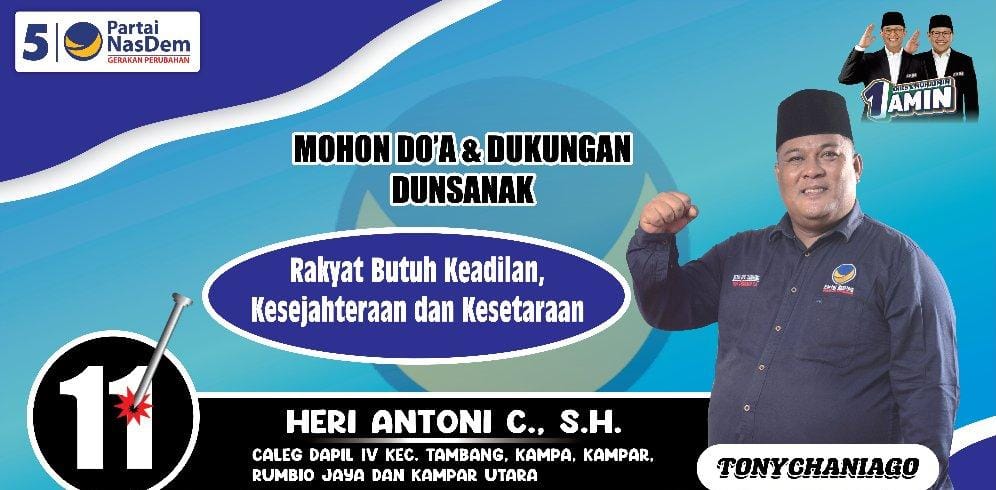 Tony Chaniago SH Caleg Dapil IV Tambang, Perjuangkan Keadilan, Kesejahteraan & Kesetaraan