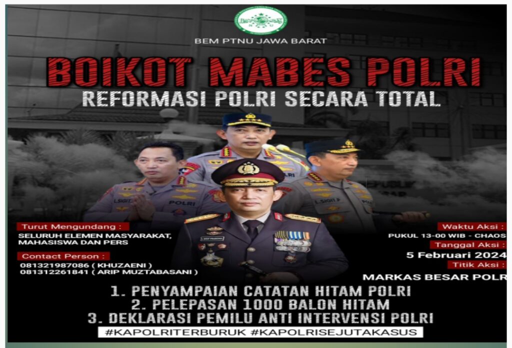 Surat Terbuka BEM PTNU Jawa Barat Kepada Mabes Polri
