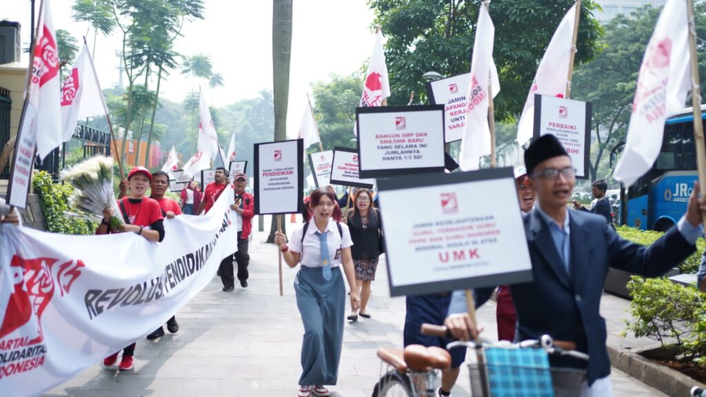 Kagetnews | Jakarta – Menyikapi situasi pendidikan nasional secara keseluruhan, Partai Solidaritas Indonesia (PSI) melakukan aksi simpatik dan edukatif menyuarakan Revolusi Pendidikan Nasional pada hari Pendidkan Nasional 2 Mei 2023 di depan gerbang Kemendikbudristek, jalan Sudirman, Jakarta. Pada saat aksi tersebut tampak beberapa kader PSI menggunakan seragam SD, SMP, SMA, Mahasiswa (pakai toga), Guru dan […]