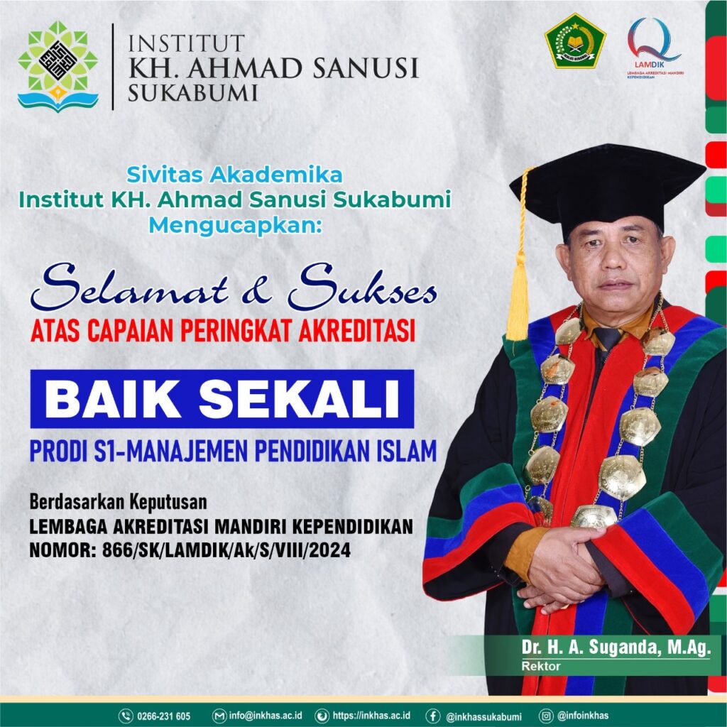 Kagetnews | Sukabumi – STAI Syamsul Ulum Gunungpuyuh Sukabumi yang saat ini telah alih status menjadi Institut KH. Ahmad Sanusi Sukabumi (INKHAS) dengan bangga mengumumkan pencapaian terbarunya dalam bidang pendidikan tinggi. Program Studi S1 Manajemen Pendidikan Islam (MPI) pada Program Sarjana telah berhasil meraih peringkat akreditasi “Baik Sekali” dengan nilai 325 dari Lembaga Akreditasi Mandiri […]