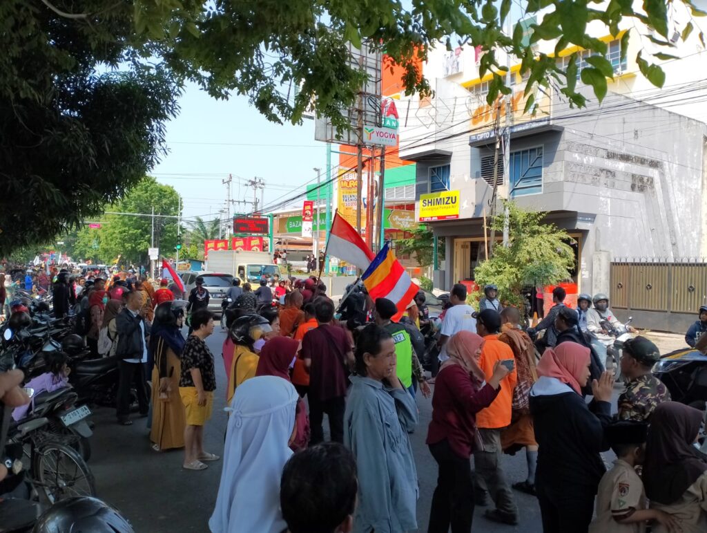 Antusiasme Warga Pekalongan Berikan Derma pada Biksu-Biksu yang Melintas Menuju Candi Borobudur