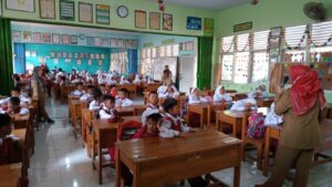 Ibu Hj. Henri saat itu memberikan edukasi pengenalan bagian-bagian tubuh pada siswa kelas 1, 2, dan 3 di SDN 3 Rambatan Kulon didampingi dengan guru kelas masing-masing.