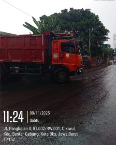 Potret truk pengangkut sampah dari DKI Jakarta yang melewati Jl. Pangkalan II Kota Bekasi, 08/11/2025. (Ist)