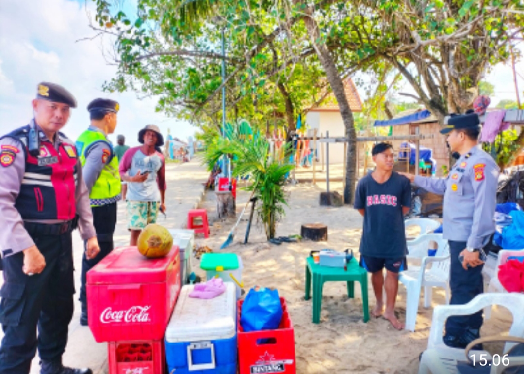 Perwira Pengawas (Pawas) Polsek Kuta Ipda I Gusti Kade Agus Wirawan, S.H., dengan didampingi Padal (Perwira Pengendali) Aiptu I Wayan Yasa bersama personil, melaksanakan kegiatan Patroli dan Dialogis yang bertempat di kawasan Pantai Kuta serta jalan Pantai Kuta, Badung, Kamis, (03/08/2023) siang.